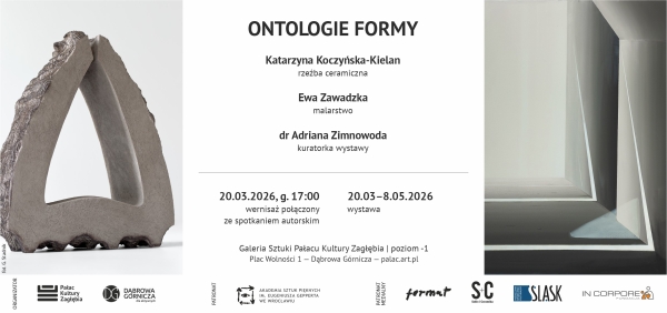 Galeria Sztuki Pałacu Kultury Zagłębia w Dąbrowie Górniczej zaprasza na wspólną wystawę Ontologie formy Katarzyny Koczyńskiej-Kielan i Ewy Zawadzkiej. Wystawa proponuje myślenie o formie jako sposobie relacji z rzeczywistością.